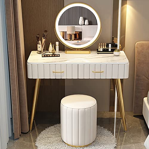 Sminkbord med dimbar upplyst spegel, sminkbord med låda och fack, sminkbord med eller utan stol för sminkrum, sovrum (färg: vit med pall, storlek: L:100cm/39
