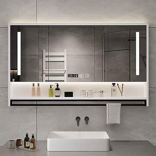 UkewEi Anti-dimma badrum väggskåp HD upplyst spegelskåp med förvaringshylla rektangel sovrum spegelskåp för hotell badrum sovrum (färg: B, storlek: 70 cm)