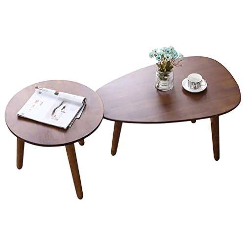 JKGHK Soffbord rund kreativ blandning, uppsättning av 2, satsbord för vardagsrum, modernt sidobord av massivt trä, enkel montering, för små rum, balkong, sovrum (färg: brun)