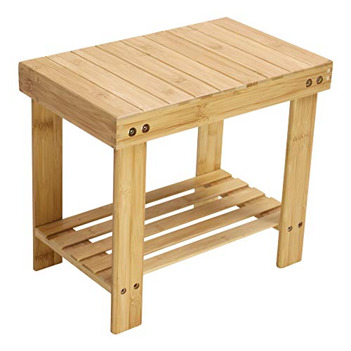 KKTONER Bambu stegpall för vuxen med förvaringshylla för badrum vardagsrum sovrum naturlig färg