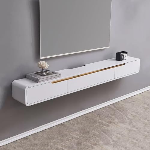 Mediakonsol flytande TV-stativ väggmonterad trä TV-konsol modernt TV-skåp nöjescenter för vardagsrum, sovrum (färg: Bianco, storlek: 120 cm/47 tum)