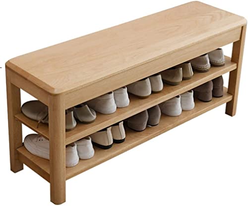 Skobänk Entré Bokträ Modern förvaring Skoställ 2-vånings, sittpall, löstagbar hylla, enkel inredningsskohylla för vardagsrum, hall, sovrum (färg: naturlig färg, storlek: 80 cm)