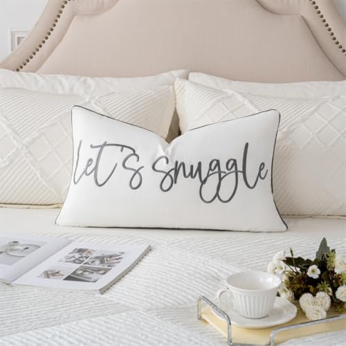 Sunkifover Dekorativa korsryggskuddar 30 x 50 cm, mjukt solitt rektangulärt broderat rektangulärt kuddfodral med Let's Snuggle ordspråk för säng, sovrum (färg: grå)