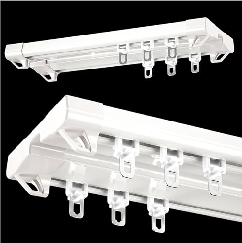 Gardinskena Tak Dubbelspår för gardiner, takmonterad Gardinskena System, Rumsavdelare Skjutgardinstång för integritet Vardagsrum Sovrum (Färg: Vit, Storlek: 10ft(2 * 5ft))
