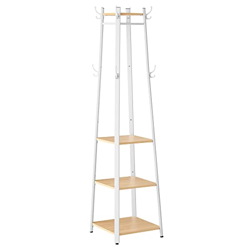 VASAGLE Fotklädhängare med stativ, omklädningsrum, med 8 dubbla krokar, 4 hyllor, stänger, metallram, för rockar, väskor, för entré, sovrum, färg ek och vit LCR080W09