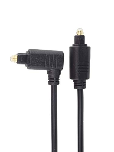 PremiumCord Toslink optisk ljudkabel vinklad - 1m, Toslink-kontakt 90° till plugg 90°, digital kabel för stereosystem HiFi Sounbar TV, HQ ljud, guldpläterad, färg svart