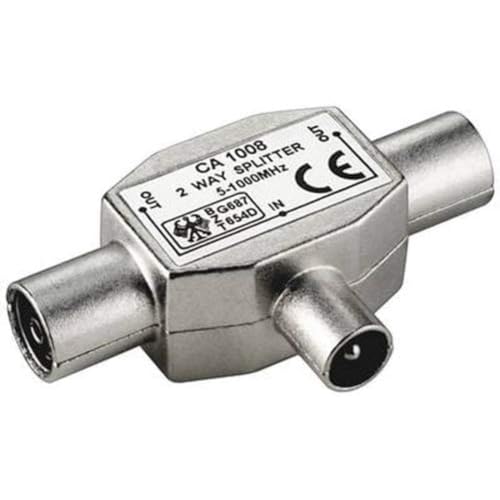 PremiumCord TV-antennsplitter IEC 75 ohm, 1 x kontakt till 2 x uttag, koaxkoppling, coaxantenn, DVB-T, färg silver