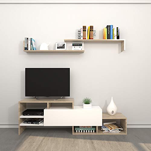 Homemania Mobile TV Fågel Fenix, Färg Vit/Sonoma, Kvalitet Melamin E1, med ABS gränser 0,4 mm. Modern mobil design
