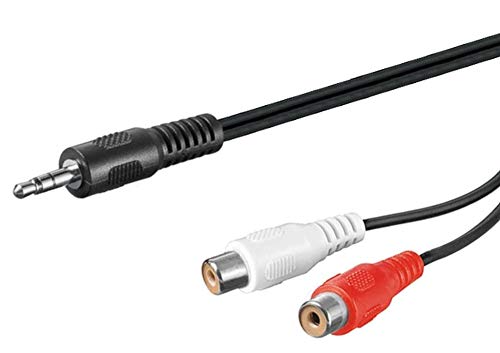 PremiumCord uttag till RCA Y-kabel 2 m, uttagskontakt 3,5 mm till 2 x RCA-uttag, uttag till RCA, stereoljud, för digitalkamera, TV, mobiltelefoner, MP3, HiFi, färg svart