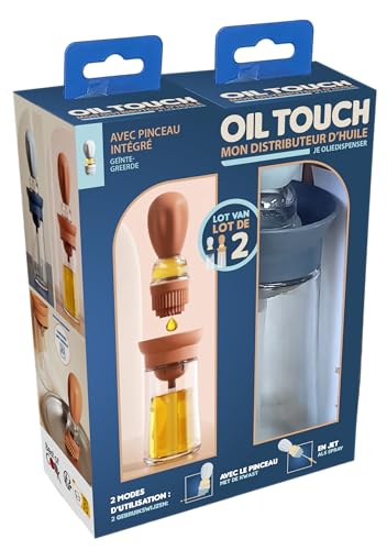 MYBO TV - Oil Touch oljeborste - oljedispenser med silikonborste 2-i-150 ml - för alla oljor: olivolja, tunnesololja - slumpmässig färg blå eller lax