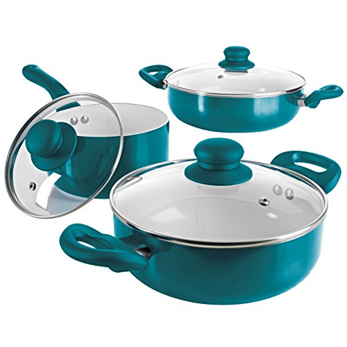 TV Unser Original 08876 - Keramiska krukor batteri (6 stycken, med glaslock, 16/20/24 cm), Smaragdgrön färg
