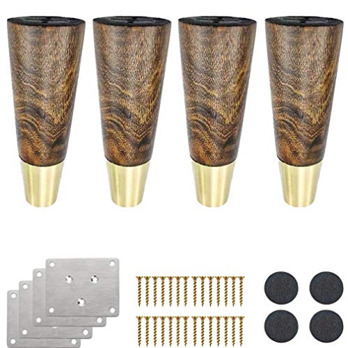 4 stycken soffben i massivt trä, gummiträ, köksmöbelfötter, möbelben, konersättningsstödfötter, skåpfötter, sängben, kaffebordsben, TV-skåpfötter, träfötter, antik färg, mässingsbas (10 cm/3,9 tum)