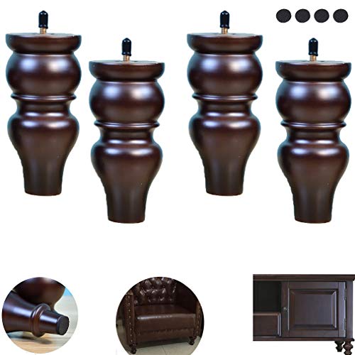 4 Naturligt massivt trä soffben, möbelfötter, modern pumpa-typ kök möbelben, ersättning TV-skåpfötter, för soffbord, byrå, ottomanfåtölj, skåpsäng, med M8 5/16 tum bult (15 cm (5,9 tum), antik färg)