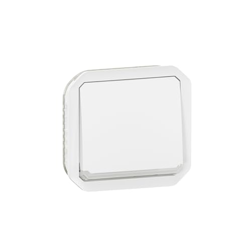 LEGRAND, Plexo ny våtrum-ytmonterad 1-vägs växelströmbrytare belysning, insats, integrerad lokalisering, 10 ampere, 230 volt, IP55 – IK07, färg: Ultravit, 069613L