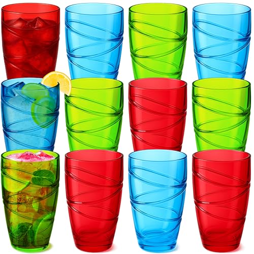 volila Färgglada Drink Hi Ball Dricksglas i Akryl, Färgade Plastglas, Akryl Drinkglas med Swirl Design för Picknick och Fest (12 stycken, 8 x 15cm, 550ml)