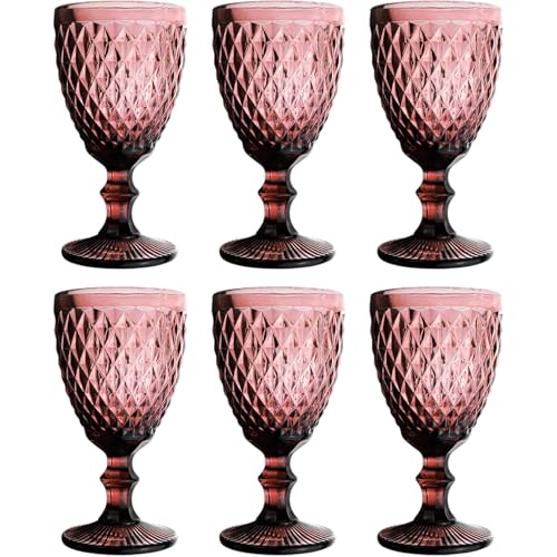 GMMH Vintage set med 6 färgade vinglas, dricksglas med prägling (nät/lila/250 ml) bröllopsglas, champagneglas, karaff, dessertskål, glasskelch, dricksglas, vinglas, vattenglas, champagneglas