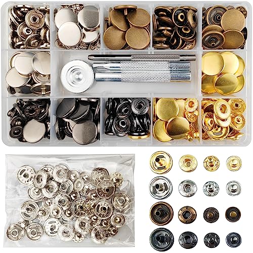 90 Sets 17mm Tryckknappar i Mässing med 4 Inställningsverktyg, 4-Färgade Tryckknappar i Metall för Sömnad, Kläder, Jackor, Läder, Jeans, Armband, Väskor