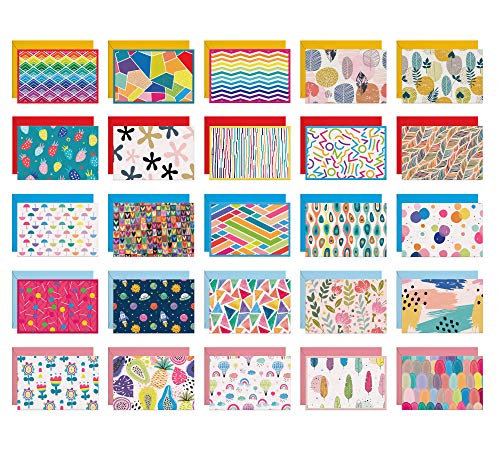 Dessie Tomma kort i 50-pack, olika tomma kort med kuvert, 10 x 15 cm tomma gratulationskort med färgade kuvert och guldförseglingar Färgglada mönster - ingen upprepning. Kort och kuvert-set för alla