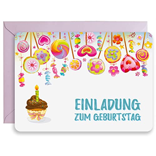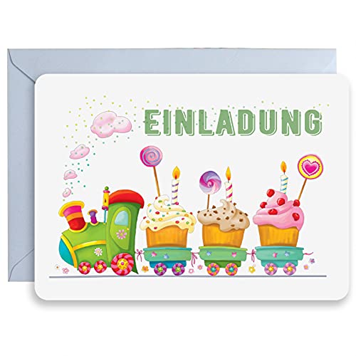 ART NUVO - 10 inbjudningskort för barn födelsedag med färgade kuvert