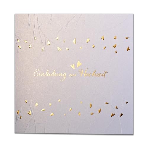 Art Nuvo Bröllopsinbjudningar – set 20 st, 135 x 135 mm med tryckbara inlägg och kuvert för bröllop – färgade, metallisk film, pressat mönster på metallpapper, zap_DE_22