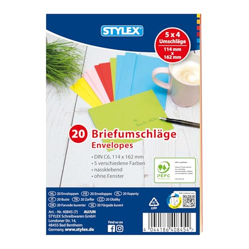 Stylex 40845-P5 – färgade kuvert DIN C6, 5 x 20 stycken våttransporterande, 80 g/m² papper i 5 djärva färger, utan fönster
