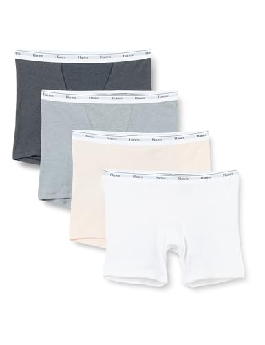 Hanes dam Mid-Thigh Boxer Brief Pack, Stretch bomullsunderkläder, 4-pack, Grundläggande färgblandning, XL