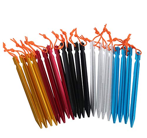 HIKEMAN 20-pack tältpinnar i aluminiumlegering, tältpinnar med dragskoväska för utomhus, camping, resa, vandring, strand, slitstarka och blandade färger (5 färgblandning)