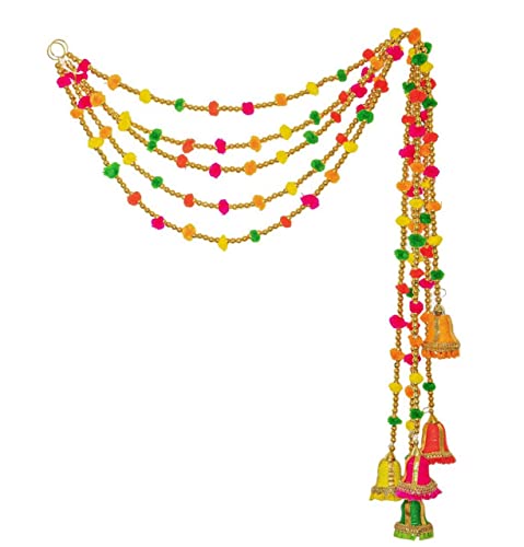 Indiska handgjorda tofsgirlanger i 5-pack, blandade färger på cirka 1,2 m (4 fot), Diwali, jul, Eid-festival (färgblandning)