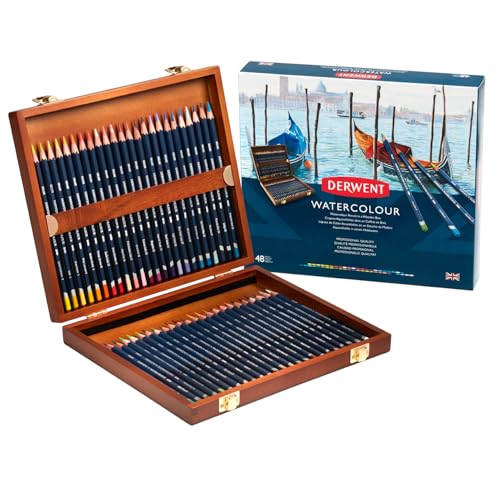 Derwent Akvarellpennor, Watercolour/Vattenfärg, Rita och Färglägg, Set med 48 Pennor, Presentask i Trä, Perfekt för Färgblandning och Lager-på-lager, Konstnärskvalitet, 0700758