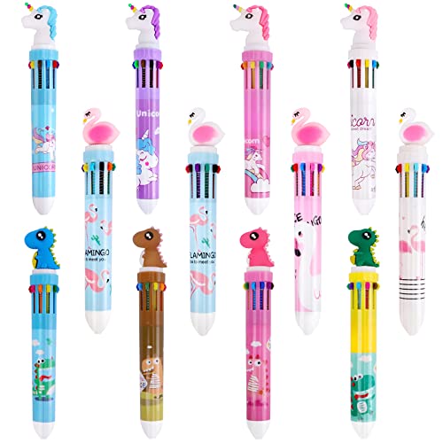 12 st 10 i 1 flerfärgade infällbara rullande kulspetspennor, 10 färger tecknad kanin flamingo dinosaurie enhörning för kontor skolmaterial studenter gåva för barn