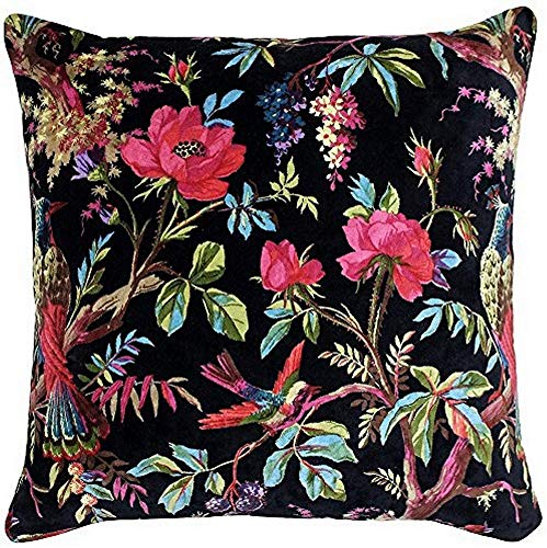 Riva Paoletti Paradise fyrkantig fjäder fylld kudde färgglad fågeltryck sammet tyg-maskintvättbar-100 fodral (20 tum x 20 tum) – designad i Storbritannien, bomull, svart, 50 x 50 cm