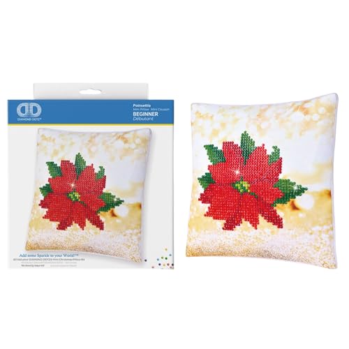 Diamond Dotz DDP2-025 kudde julstjärna, örngott med diamantbild för egendesign, ca 18 x 18 cm stor, målning med diamanter, perfekt som hemdekoration och gåva, färgglad