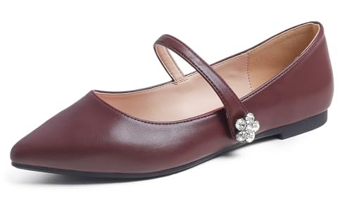 Feversole Women's Pointed Toe Patent Ballet Flat, färgglad Macaron spets spets spets minnesskum kudde för kvinnor lackbalett, Maryjane Bourgogne färgspänne med strass, 39 EU