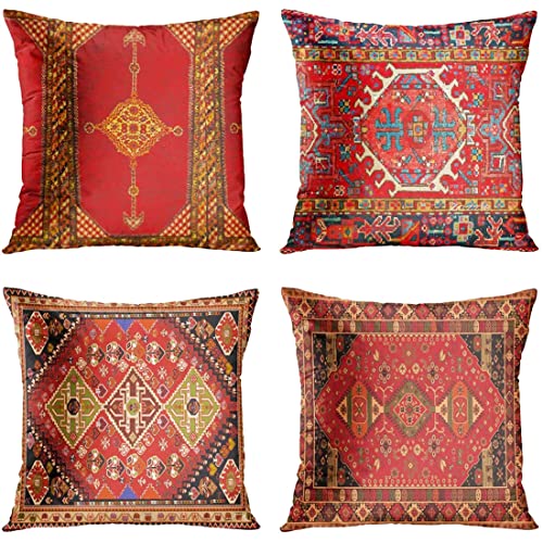 NDMMSO Uppsättning av 4 kuddöverdrag 45 x 45 cm geometrisk persisk kilim heminredning orientalisk Ikat kuddfodral dekorativ tum kudde soffa kuddfodral färgglad röd stam kuddfodral 45 x 45 cm