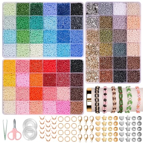 13 786 st. pärlor, set med glaspärlor för att trä på tråd, pärlpyssel med 1 200 pärlbokstäver, färgglada pärlor för armband, gör det själv, pärlset för smycken, kedjor, gör-det-själv-set (3 mm)