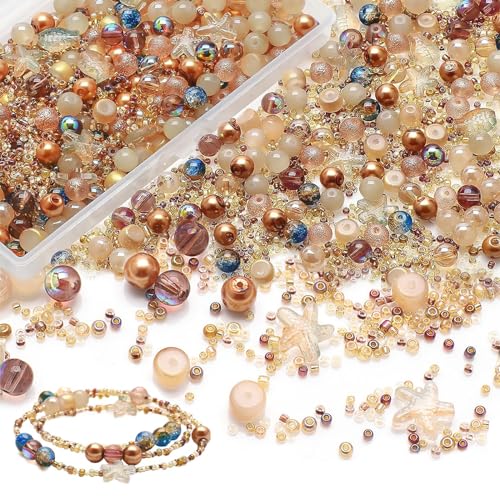 Lilbitty Bruna glaspärlor för tillverkning av armband, färgglada kristallpärlor, ett mångsidigt set med 8 mm pärlor, inklusive oceanelement som sjöstjärnpärlor och rocailler