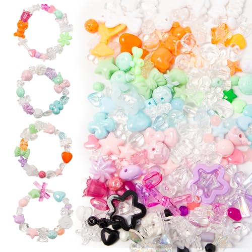 Sxutop 160 ~ 200 stycken blandade akrylpärlor, färgglada akrylpärlor med 8 färger, rosetter, blomma, hjärta, stjärna, runda pärlor, plast, färgglada smyckespärlor för armband, halsband,