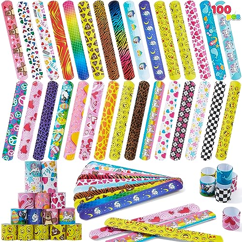 JOYIN Slapband, 100 st slaparmband, superslap-armband med färgglada hjärtan, djur, festpåse, fyllning (30 designer) alla hjärtans dag-gåvor, fest, påskäggsfyllning, Plast