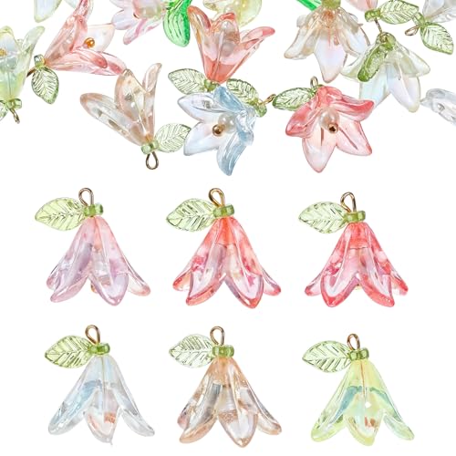 Xinjoduz 20 stycken hängsmycken, pärlor, blommor, berlockarmband, hängen för armband, färgglada blommor, teman, små berlocker för pyssel av halsband, armband, örhängen, smyckestillverkning