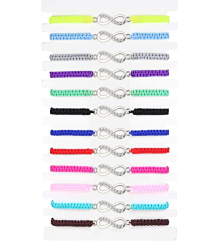 Adramata 12 st vänskapsarmband för damer, oändlighet, livets träd armband, matchande flätade färgglada armband i set, justerbara, stapelbara handgjorda armband för kvinnor och flickor, 16 centimeters