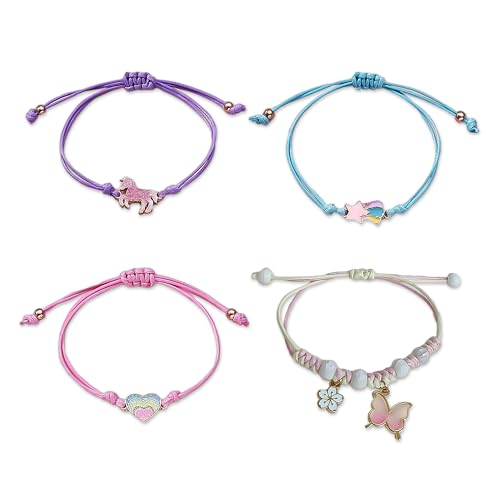 MEMOFYND 4 stycken färgglada armband för barn, tecknade djurarmband, söta vänskapsarmband, justerbara flätade armband, lämpliga som födelsedagspresenter, verstellbar, Metall