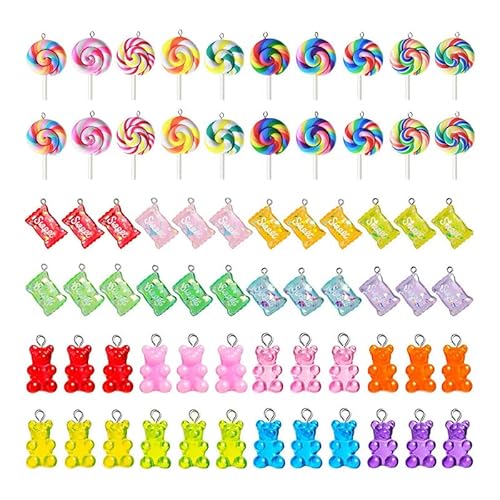Hifot 68 st söta godisberlocker, färgglada björn-, gummigodishängen, polymerlera, klubbformade berlocker för armband, nyckelring, halsband, örhängen, hartsberlocker, gör-det-själv smyckestillverkning,