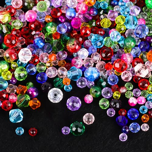 TOPBELIEF 720 stycken tjeckiska fasetterade pärlor, kristallakrylpärlor, färgglada kristallpärlor, kristallhängen dekoration, kristallpärlor för armband, halsband, nyckelringar, smyckestillverkning