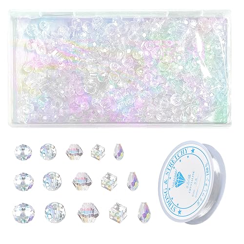 MEMOFYND 600 kristallglaspärlor, med 1 rulle pärlrep, pärlor med 4/6/8 mm gänga, fasetterade färgglada glaspärlor, pysselpärlor, för pärlor för armband, gör-det-själv-halsband, örhängen, smycken etc