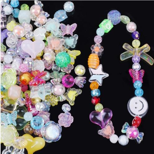 MisFun Sorterade akrylpärlor, pärlor för armband, pärlor för tråd, ca 100 stycken, pysselpärlor, färgglada akrylpärlor, för gör-det-själv-smyckestillverkning, armband, halsband, flerfärgade