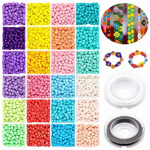 3 mm Rocailles pärlor för armband, 4 800 stycken 8/0 pastellglaspärlor, färgglada pysselpärlor för att trä på armband halsband örhängen gör smycken och gör-det-själv-hantverk
