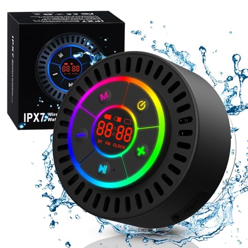 RIOCALOTDD Vattentätt bluetooth-duschhölje, HD stereo bärbar Bluetooth-högtalare, Bluetooth-dusch med sugkopp, nyligen uppgraderat Bluetooth 5.2, färgglada lampor, svart