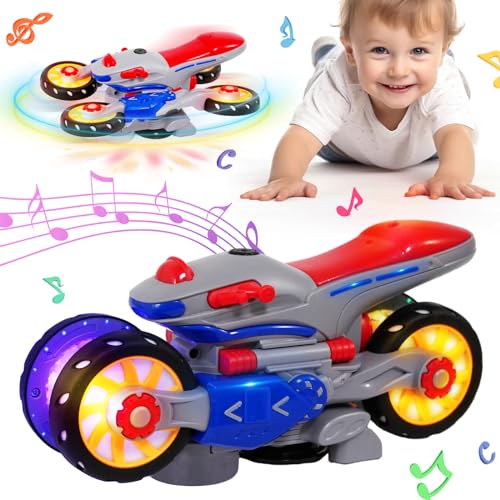 SWTOIPIG Roterande motorcykelleksak, elektriskt fullt rörelseområde, automatisk cykeldeformation, färgglada lampor och trevliga ljudeffekter, pedagogisk leksak