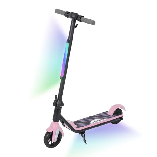 KHHK Elektrisk skoter för barn 6–12 år, 6" hopfällbar skoter, max hastighet 12 km/h, färgglada LED-lampor och display, batteritid 5–8 km, skoter med elektronisk broms (rosa)