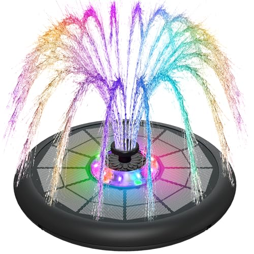 Solars fontän med färgglada lampor 2025 Upgrade Solars vattenpump med batteri, flytande fontän med 6 munstycken för fåglar, pool, vattencirkulation (3,5 W 18 cm solfontän)